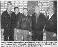 Mit 17 ja, zwei nein und drei Enthaltungen wurde Manfred Runte zum zweiten Vorsitzenden gewählt. Jeweils sieben Vorschläge wurden von den Mitgliedern auf die Posten des Schriftführers und des Beisitzers gemacht. Gewählt hat die Versammlung Hermann Braem als neuen Schriftführer und als Beisitzer Paul Möllerfeld. Walter Plöger ist neuer Kassenprüfer.